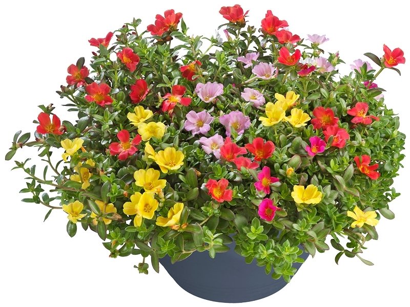 Portulak (Portulaca, Portulacum, Postelein) planten komen uit Zuid-Amerika. Door veredeling zijn de exemplaren bij GroenRijk prima opgewassen tegen ons klimaat, maar het blijven warmte en licht liefhebbers. Zet de schaal dus pal in de zon.