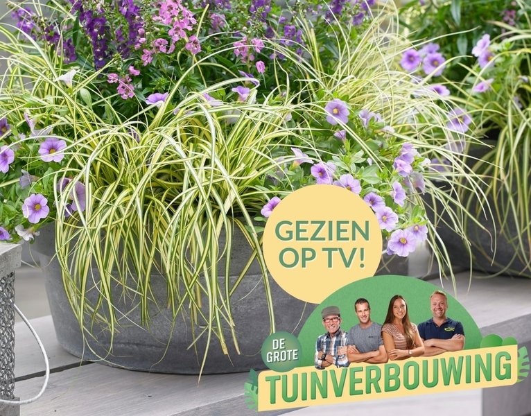 In het SBS6-programma De Grote Tuinverbouwing geven Ivo en het team elke week een tuin in nood een fikse make-over. Ook voorzien ze de kijker van inspiratie en tips om huis en tuin naar een groener level te tillen. Wist u dat alle planten die in het programma worden gebruikt ook in ons tuincentrum in Middelburg te koop zijn? U vindt ze na uitzending in het speciale vak op de plantenafdeling.