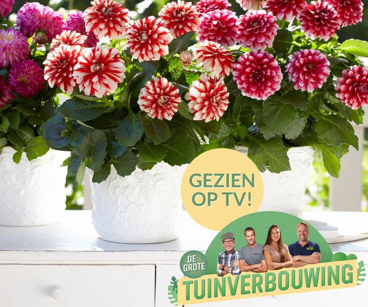 In het SBS6-programma De Grote Tuinverbouwing geven Ivo en het team elke week een tuin in nood een fikse make-over. Ook voorzien ze de kijker van inspiratie en tips om huis en tuin naar een groener level te tillen. Wist u dat alle planten die in het programma worden gebruikt ook in ons tuincentrum in Middelburg te koop zijn? U vindt ze na uitzending in het speciale vak op de plantenafdeling.